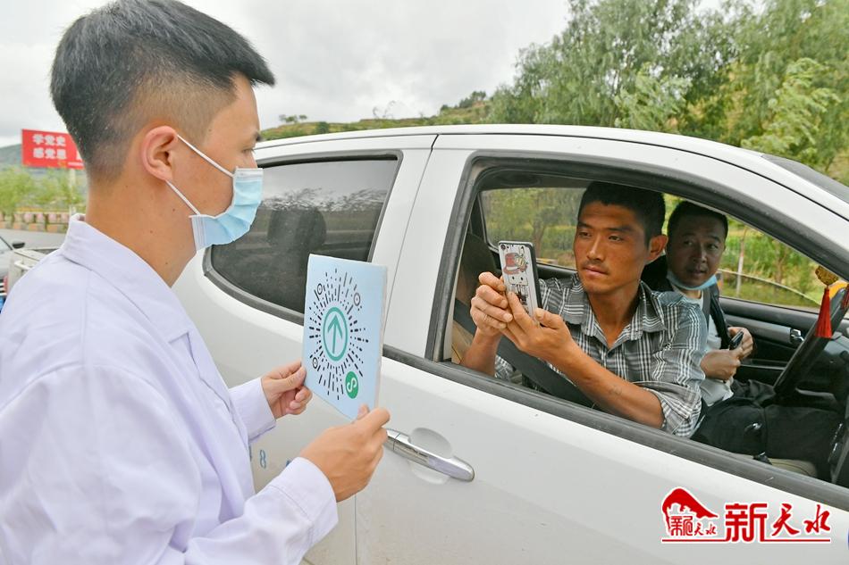 详细询问人员信息,进行体温测量,查看健康码、行程卡……8月17日上午,在庄天二级公路胡川段,疫情防控卡点的执勤人员在对所有驶入张家川回族自治县的车辆进行细致检查。