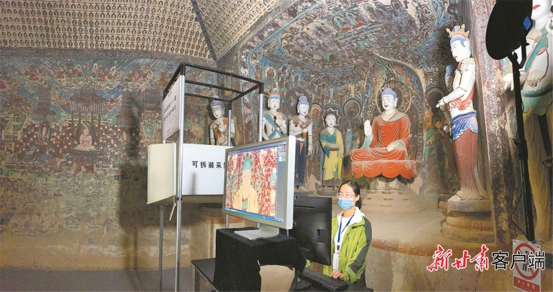 莫高窟第341窟内,余音正和同事进行数字化采集工作,“数字化成果可进行多元化的深度加工、整合和集成,通过线上线下平台进行展览展示,让不可移动文物走出大漠戈壁,面向全球。”