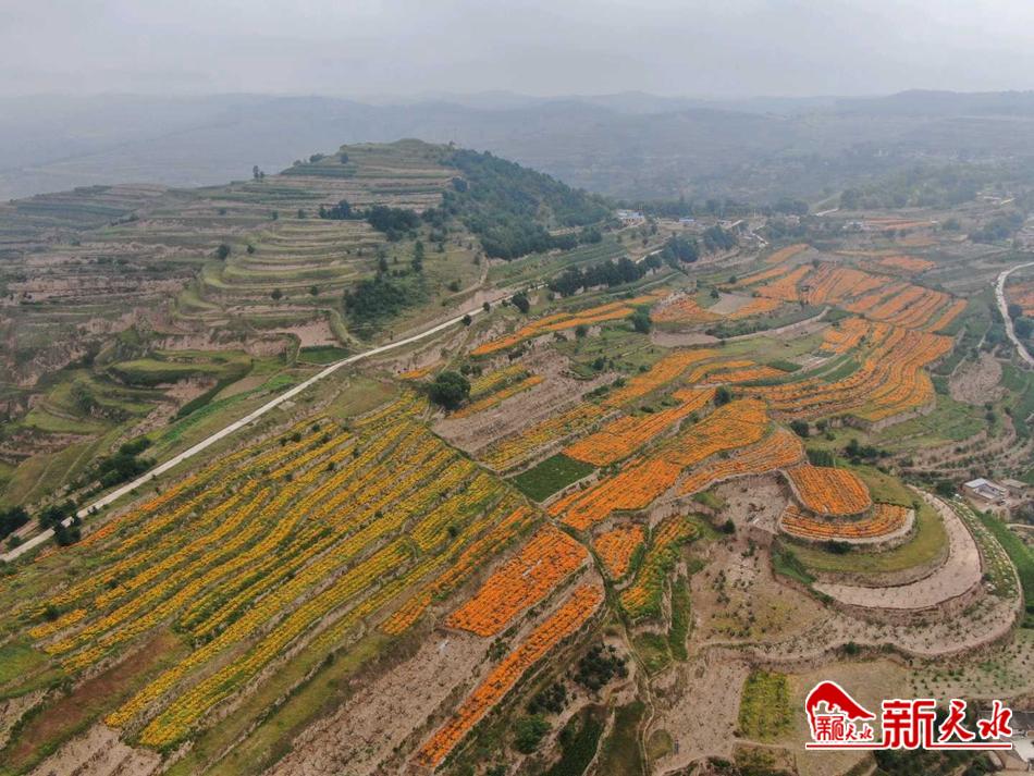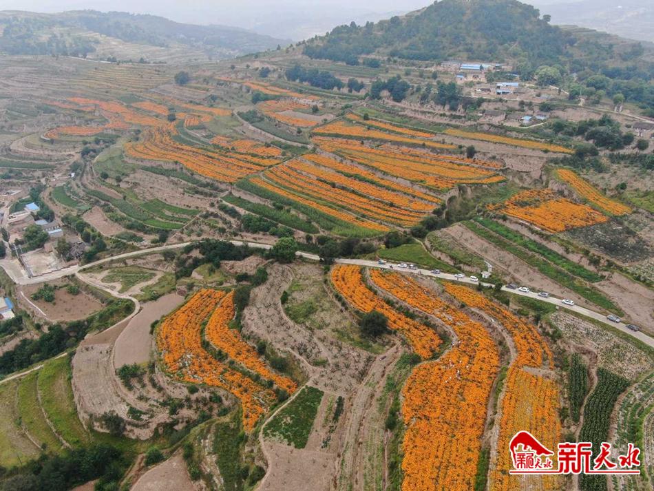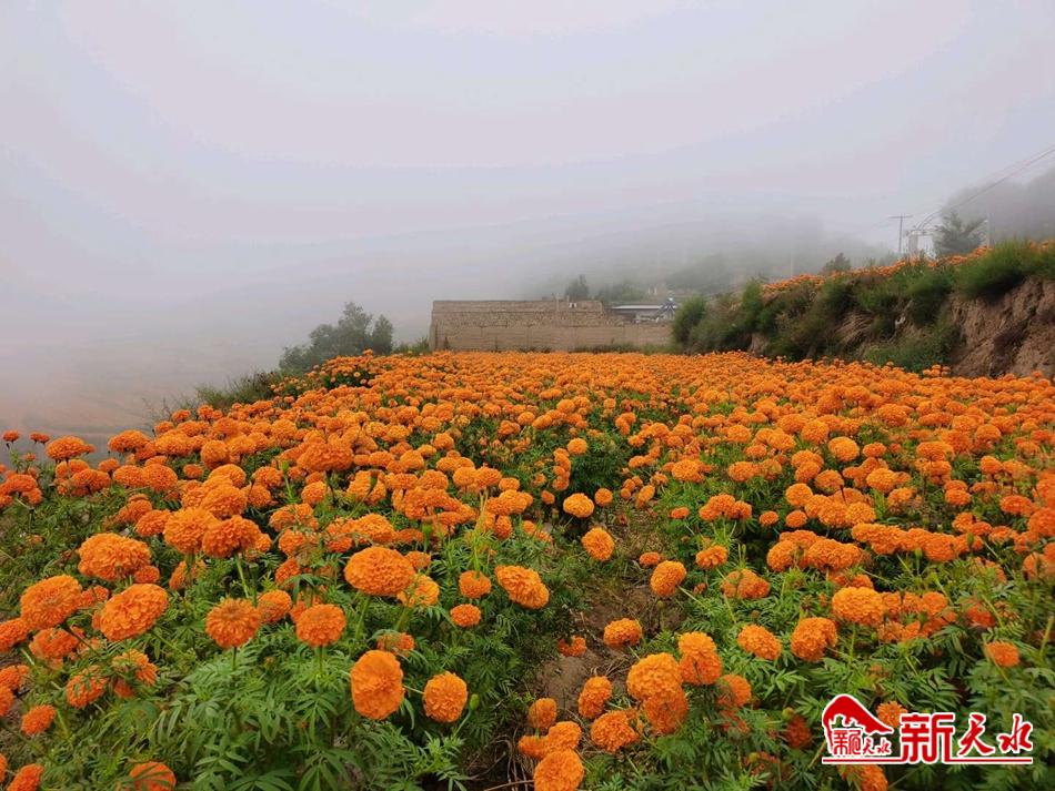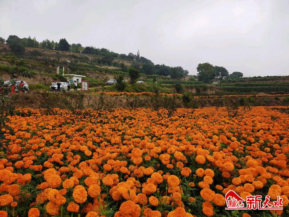 新天水讯【特约通讯员武建峰】 近日,甘谷县安远镇菊花种植基地的万寿菊已经到了采摘的季节,田野里一片繁忙的景象。当地政府通过培植菊花产业,为农民增收、乡村振兴找到了一条新的致富道路。