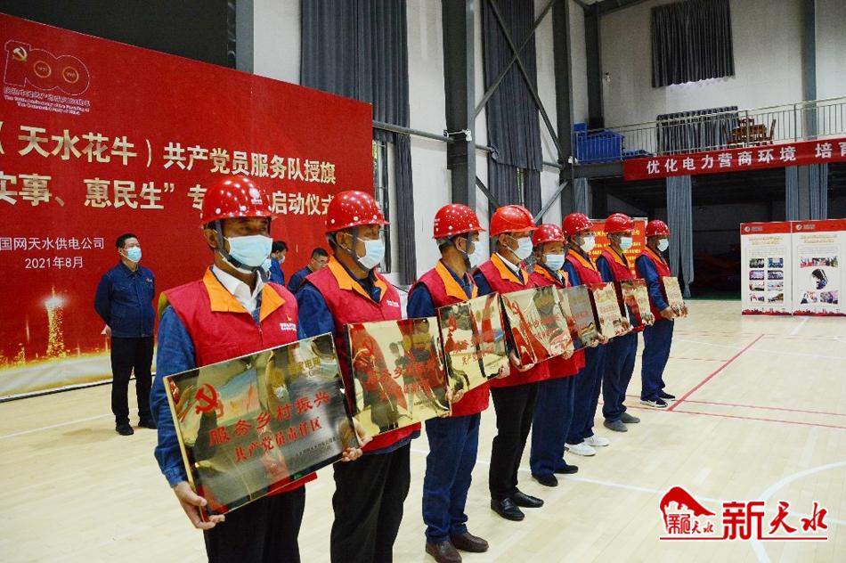 新天水讯【记者 刘晓亚】8月18日下午,国网天水供电公司举行国网甘肃电力连心桥(天水花牛)共产党党员服务队授旗暨“学党史、担使命、办实事、惠民生”专项行动启动仪式,这标志着国网天水供电公司基层各单位组建且已注册的共产党员服务队全员将围绕重大政治保电、服务乡村振兴、助力“碳达峰 碳中和”、优化营商环境、应急抢修、爱心志愿和关心关爱职工等七项服务全方位展开工作。
