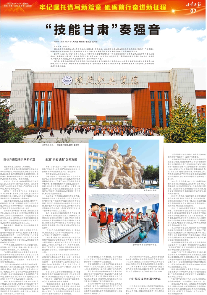 兰州资源环境职业技术学院聚焦“技能甘肃”,深化改革创新,破解发展难题,凝心聚力推进“双高”院校建设,努力创建“资环样板”……
