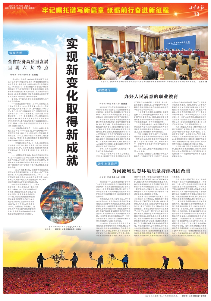 8月18日,省政府新闻办举行“全省贯彻落实习近平总书记视察甘肃重要讲话精神 实现新变化取得新成就”新闻发布会。王煜宇 摄