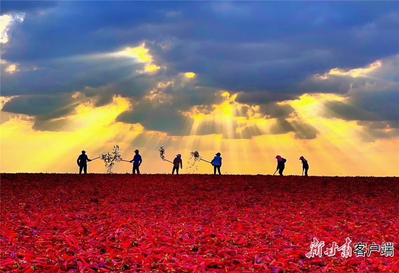 高台县辣椒喜获丰收,村民抓紧晾晒辣椒。新甘肃·甘肃日报记者 张铁梁