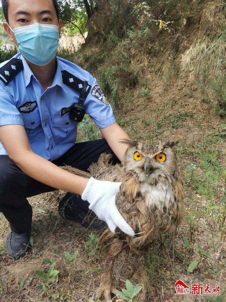 新天水讯【记者 景春燕】8月18日,张家川县公安局森林警察大队接到群众报警后,成功救助了一只野生猫头鹰。经过检查,猫头鹰并未受伤,民警遂将其带至野外放生。