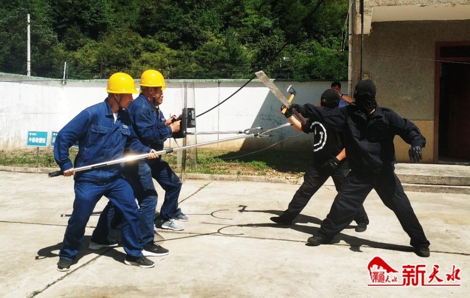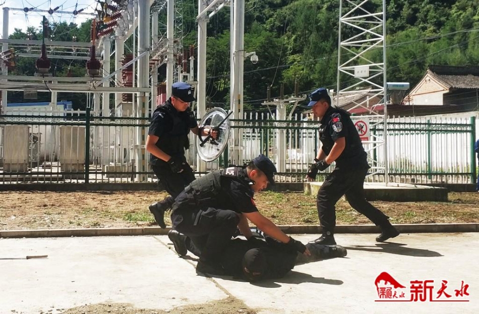 新天水讯【记者马凯】为有效防范重要输变电设施和调度大楼等重点场所免遭恶意破坏,进一步提升员工反恐处理能力。8月20日,天水市公安局秦州分局反恐大队和国网秦州区供电公司在35千伏娘娘坝变电站开展了警企反恐怖联合袭击应急演练。