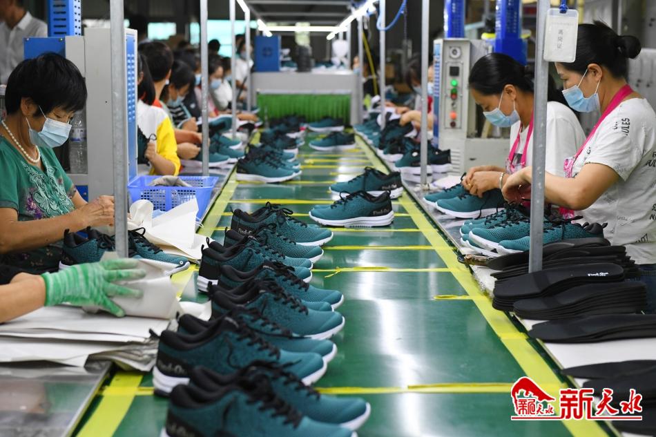 8月23日,天水恒远鞋业有限公司工人在生产车间生产橡胶鞋。
