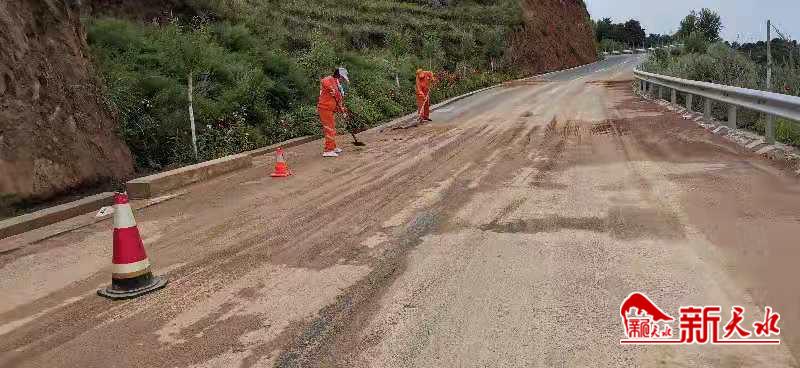 新天水讯【通讯员张添珍】8月21晚上的暴雨天气过后,个别路段出现路面淤泥、落石等现象,清水公路段迅速行动,组织职工及时开展雨后公路养护,全力恢复路容路貌。
