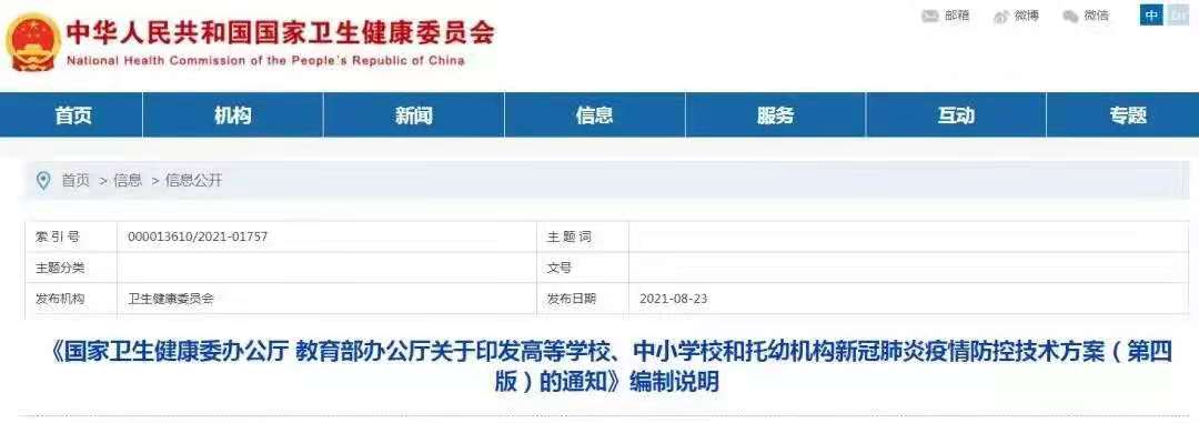 国家卫健委和教育部23日发布了最新版高等学校、中小学校和托幼机构新冠肺炎疫情防控技术方案,对学校人员返校要求、校门管理、员工管理、应急处置机制等防控措施进行了调整。