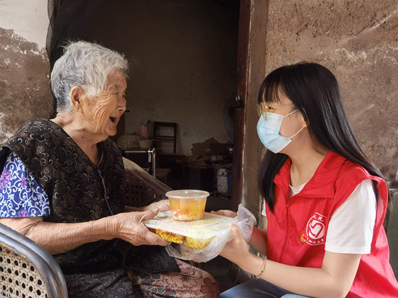 青年党员主动请缨,轮班定点为有需要的”空巢老人“送餐上门。李敏摄