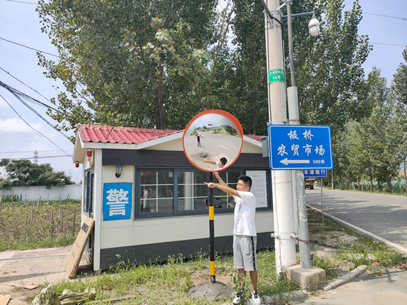板桥街道张艞村在路口安装凸面广角镜立柱,为村民出行安全保驾护航。祁圆圆摄