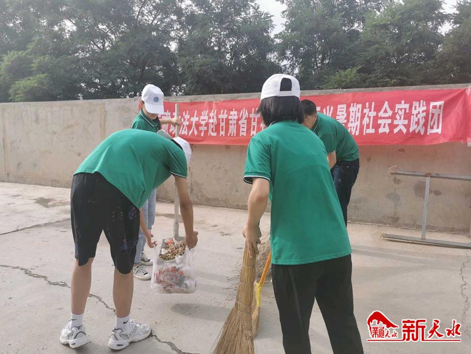 来自西安体育学院的王雅洁同学,放假回家就主动请缨加入本村的环境卫生整治队伍中,积极参与建设“美丽乡村”。在此期间,她了解到甘谷县在加快推进乡村全员疫苗接种工作,由于时间紧、任务重,各乡镇卫生院人手短缺,于是又报名参加甘谷县谢家湾乡卫生院的一线疫情防控工作,做好自身防护的同时,与一线医务工作者一同深入到各个乡镇村民的家中积极进行疫情防控知识的宣传,为甘谷县的疫情防控事业作出了自己力所能及的努力和贡献。 来自甘肃政法大学外国语学院的一行人也在这个假期赴甘谷县,开展以“校企联村心连心 助力乡村谋振兴”为主题的暑期“三下乡”社会实践活动。在实践期间,他们先后来到斜坡村、康家坪村,与群众深入接触、沟通和交流,通过入户走访、调查问卷、座谈交流等方式,详细了解村民生产生活基本情况。同时,学生们还积极同农户一起采摘花椒、利用直播平台助农销售、帮助农户清扫院落、整治村庄环境卫生,营造了共同关心和支持参与提升乡风文明、助力乡村振兴的良好社会氛围。