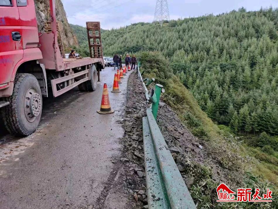 事故发生后,养护该路段的张家川公路段按照相关程序上报公路突发事件信息、告知交通运输综合执法大队的同时,派出技术人员在事故现场两端规范布设安全警示标志牌,安排技术人员配合交警指挥疏导交通,避免二次事故发生;在临崖一侧路段摆放了近100只安全锥桶,为救援人员提供安全保障,并积极配合交通运输综合执法部门工作人员评估路产损失, 直至晚上9时,事故车辆被拖走。打扫完现场散落的车辆碎片,拆除警示标志牌,道路恢复通畅后,该段技术人员才撤离现场。