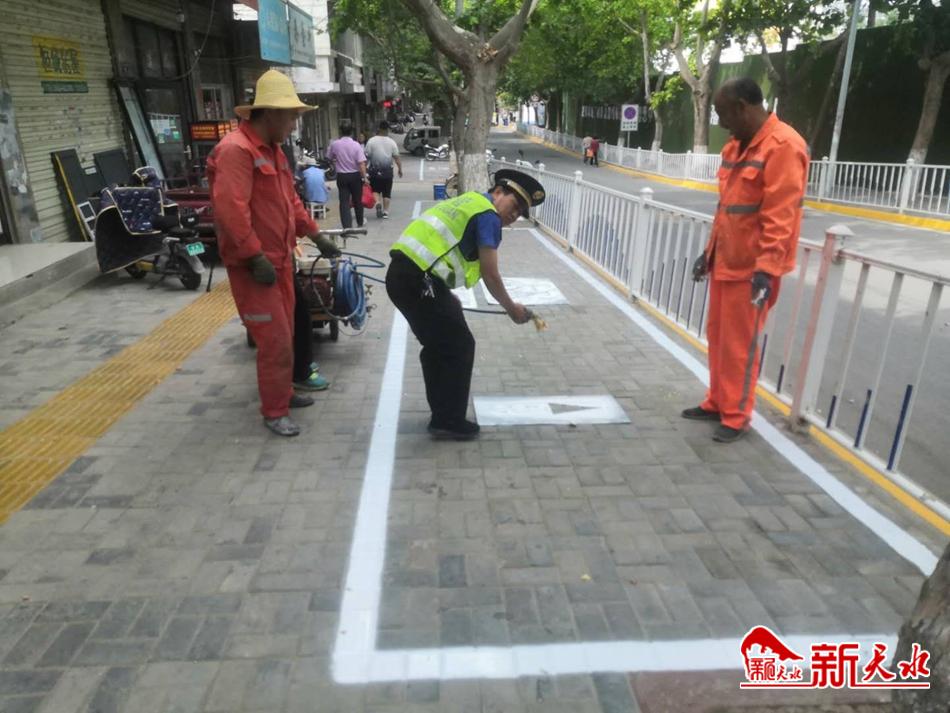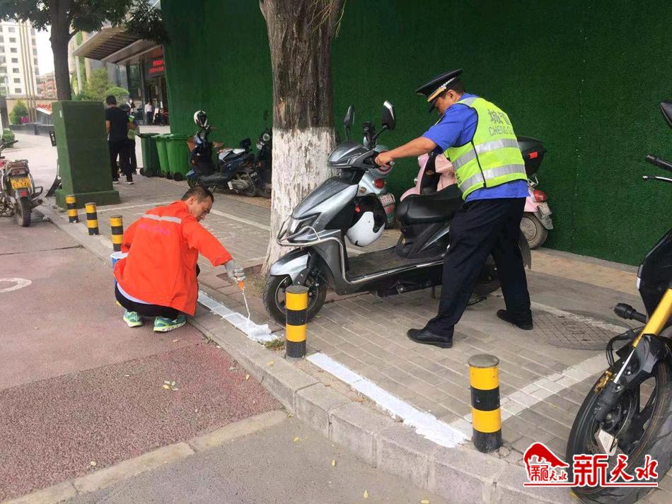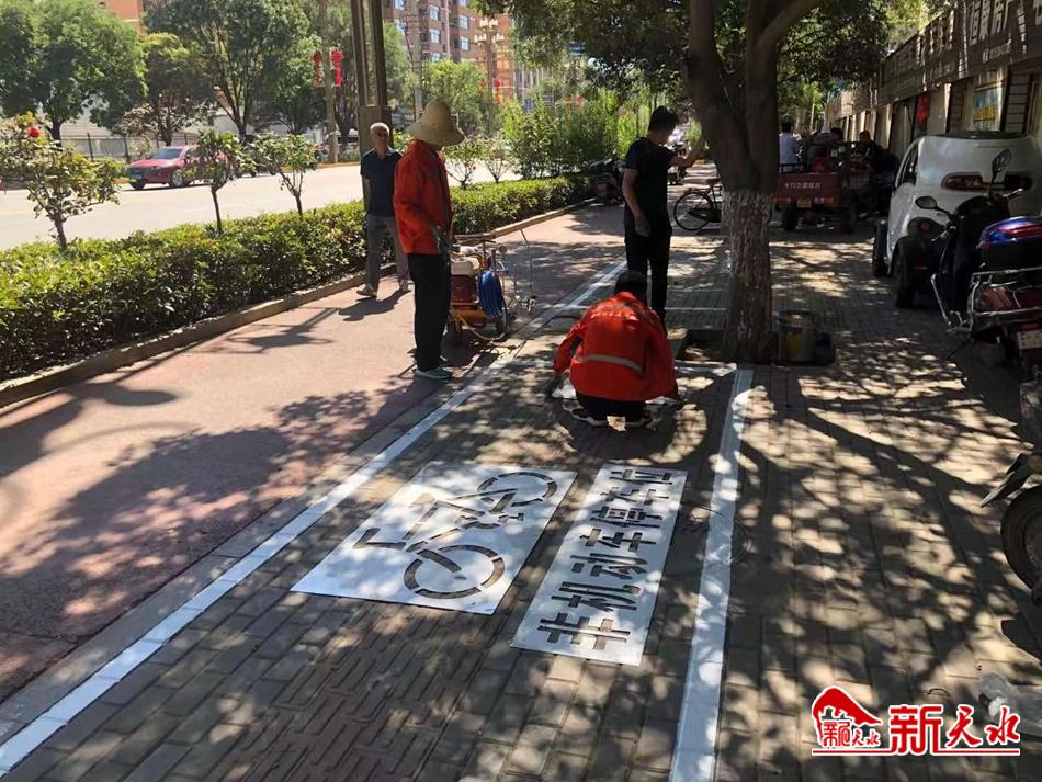 新天水讯【通讯员靳雪萍】 为深入推进“一难两乱”整治工作,进一步规范非机动车停放管理,改善道路环境秩序,近期,秦州区执法局玉泉中队本着“合理设置、方便市民、规范停放”的原则,积极开展非机动车停车位施划工作。