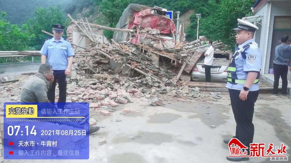 8月25日清晨6时20分许,麦积公安分局交警大队接群众报警,称G310国道麦积区东岔镇牛背村路段发生一起单方交通事故,一辆外地四轴货运车辆行驶过程中因失控冲进路边民宅院子里,致驾驶员受伤被困于驾驶室,车辆损坏严重,堆放杂物的房屋被撞倒塌,好在民宅内没有人。