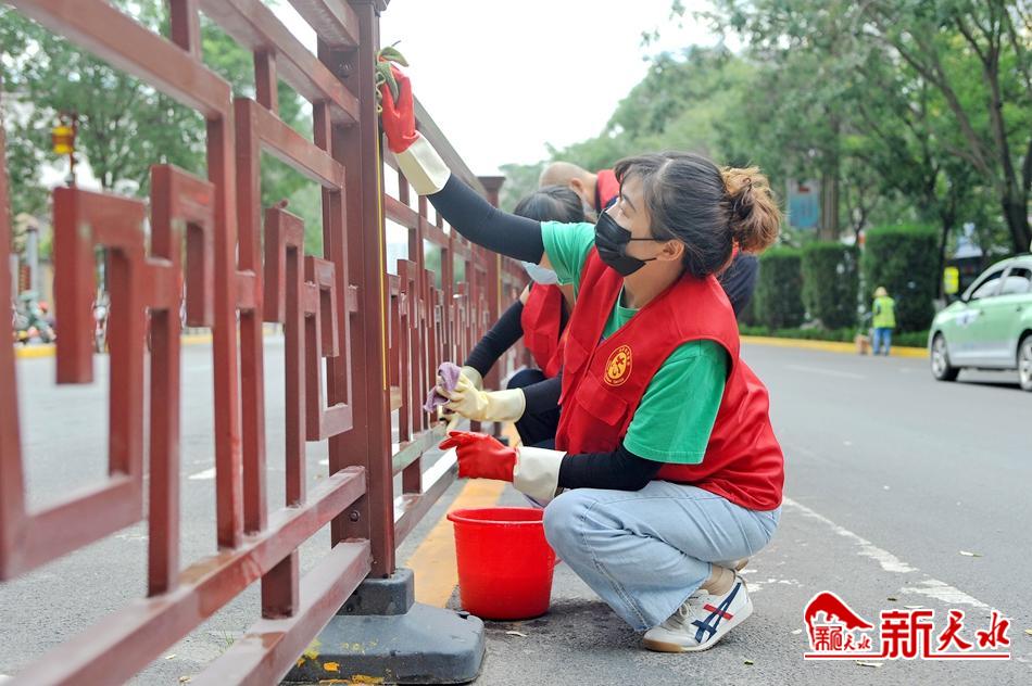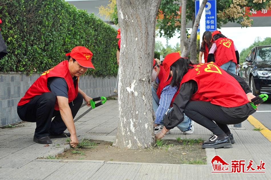 9时许,记者来到秦州区藉河北路时,市人大常委会机关正在天水老年大学附近进行环境卫生整治,每个人都穿着志愿者红马甲,戴着红帽子,认真清扫着道路上的落叶和垃圾。