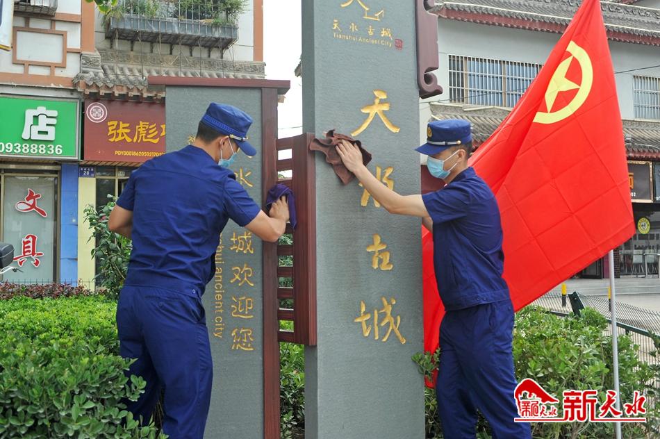 8月26日,天水市创建全国文明城市工作指挥部办公室印发了创建全国文明城市“包街”责任路段及十字路口的通知,对各责任单位所包路段进行了分配。27日一大早,全市104家党政机关及企事业单位志愿者纷纷前往各自“包街”区域,开展打扫区域卫生、进行文明劝导、制止乱停乱放、规范店外经营志愿服务活动,形成了人人参与、上下联动的良好氛围,掀起全民创建文明城市的热潮。