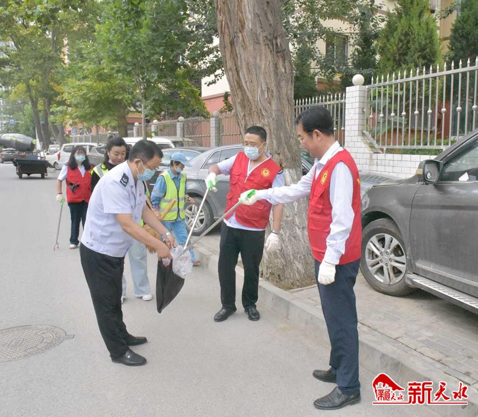 新天水讯 8月27日上午,天水市税务局机关创城志愿服务者、党员先锋突击队,携手市环卫保洁员共同开展共创文明城市活动。