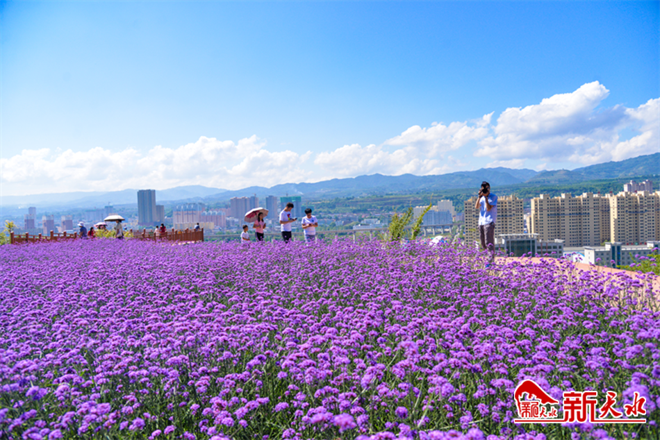 淡雅的薰衣草、热烈的马鞭草、娇弱的月季竞相绽放,一丛浅淡一丛深,吸引游人漫步其间,徜徉花海,与大自然亲密接触。再举目远眺,便将清水县城全景尽收眼底。