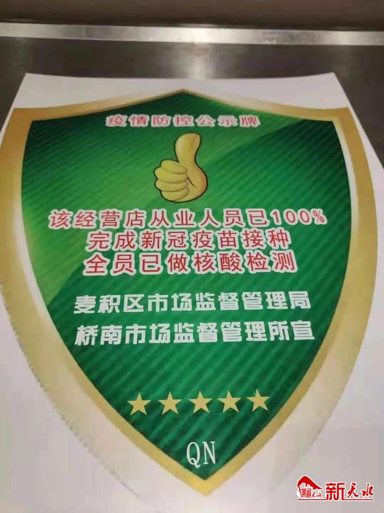 麦积区市场监督管理局在抓好文明城市创建工作的同时,在桥南辖区开展“文明创城+疫情防控”金色盾牌的发放工作,脚踏实地做好文明城市创建与疫情防控两手抓。