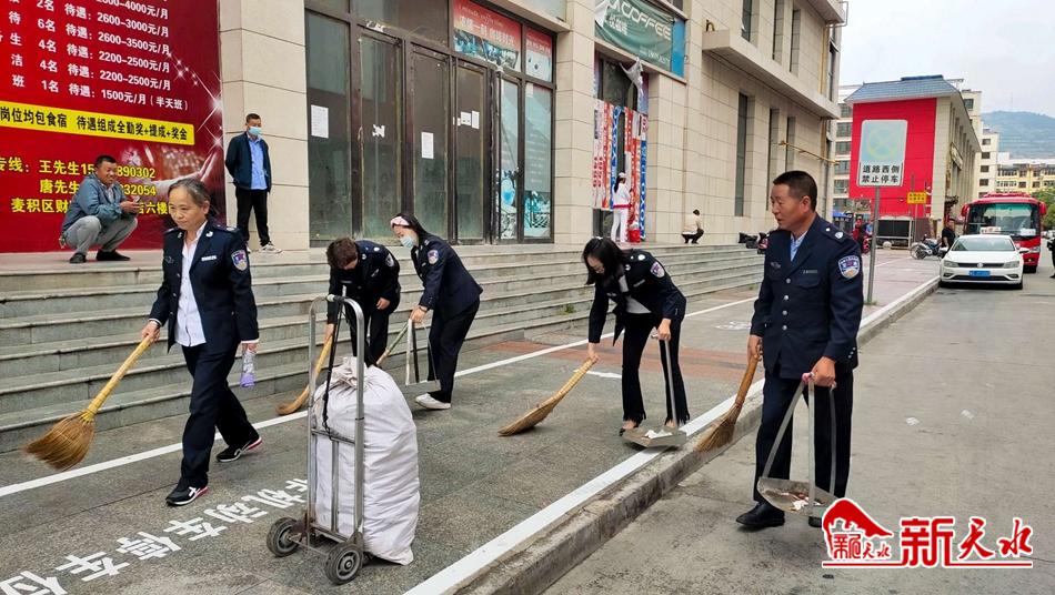 8月31日,天嘉交运集团麦积运输服务有限公司开展创建全国文明城市志愿服务活动,组织员工分别对包抓小区、路段、路口进行卫生清扫和交通疏导。