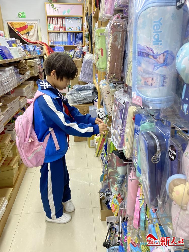 8月31日下午5点左右,位于春风路的两家文具店里人来人往,领着孩子的家长、穿着校服的学生们不约而同地来到店内挑选自己所需的文具用品。
