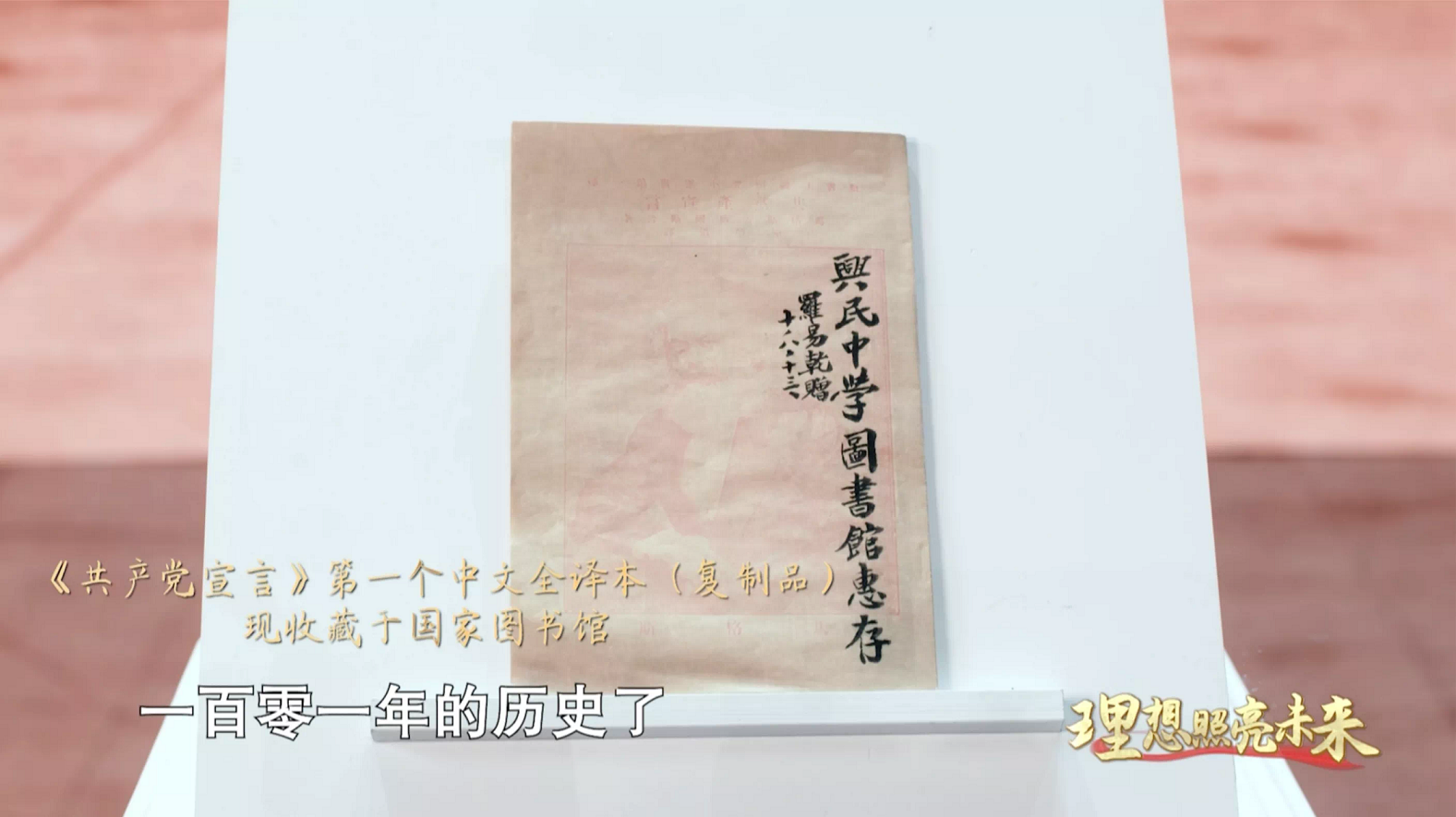 在今年《开学第一课》的舞台上,摆放着一本1920年出版的《共产党宣言》中文全译本。