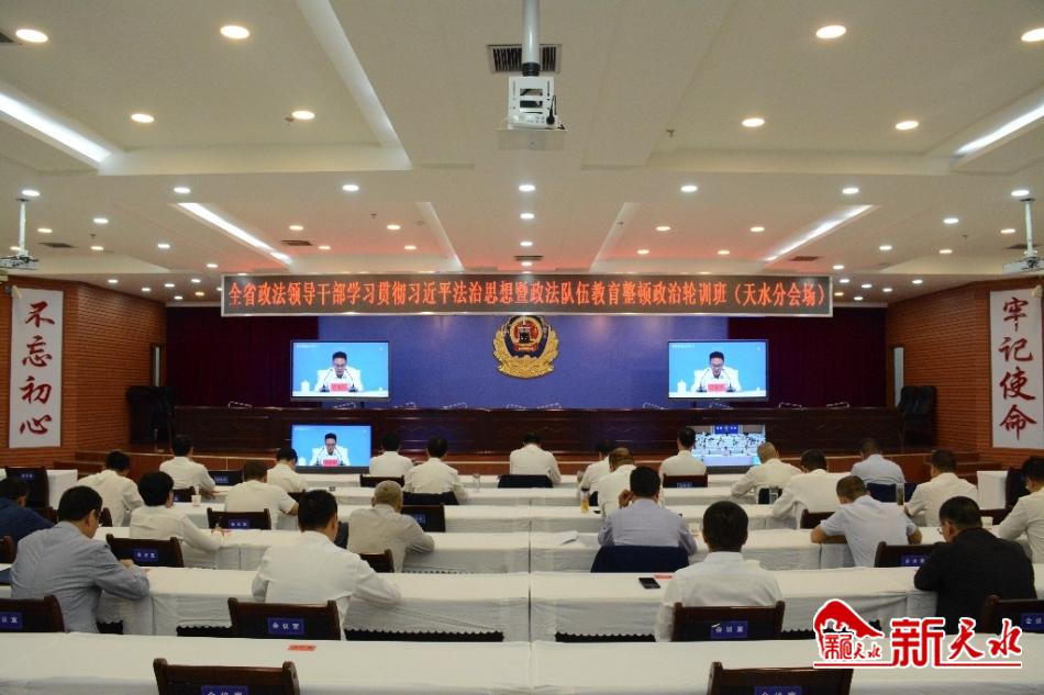轮训班以电视电话会议形式举办。天水市委常委、政法委书记刘天波,副市长、市公安局局长郭庆祥,市中级法院院长马忠福,市检察院检察长张发魁和市委政法委及市级政法各单位班子成员在天水分会场参加培训。