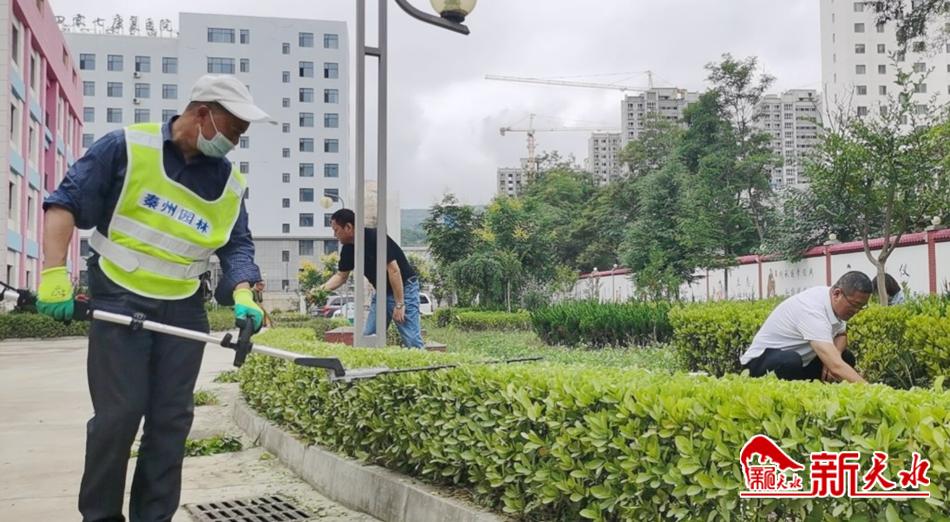 9月2日,秦州区园林建设服务中心绿化二队组织人员来到天水市儿童福利院献爱心,他们有的修剪绿化苗木,有的拔除花园里的杂草,有的清扫院子。经过短短半天时间的劳作,福利院的环境面貌焕然一新。