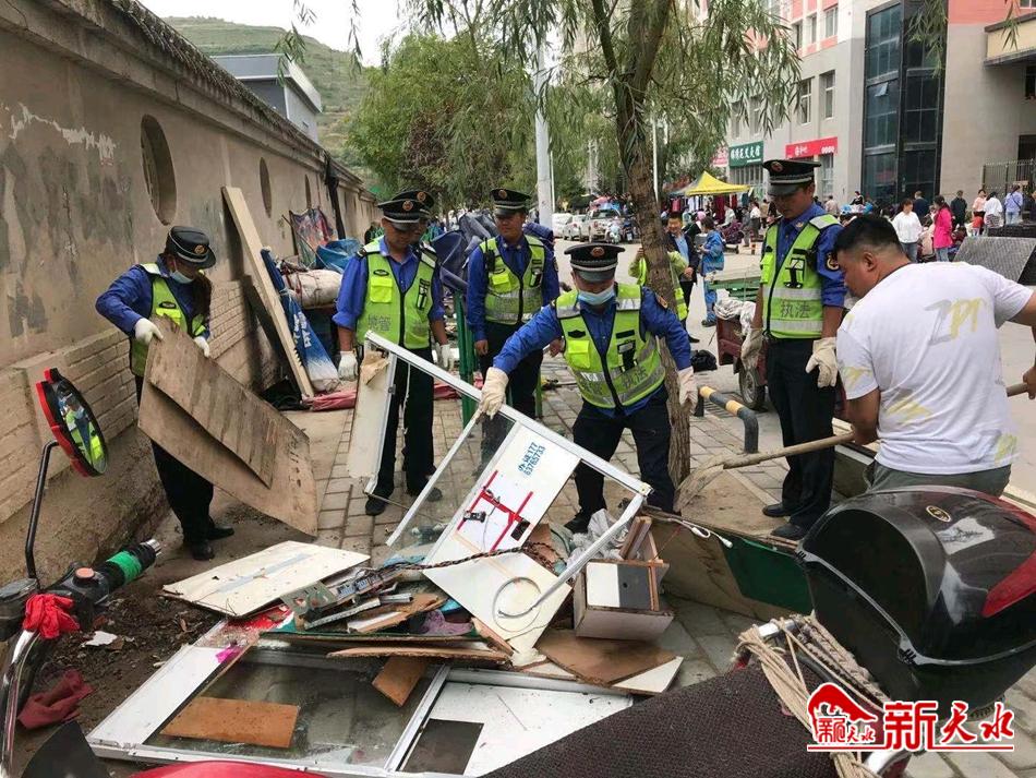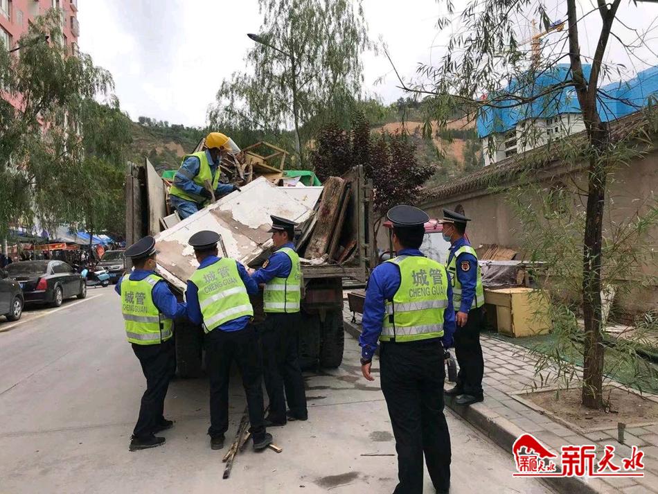 【创城】秦州区执法局天水郡中队清理杂物还路于民