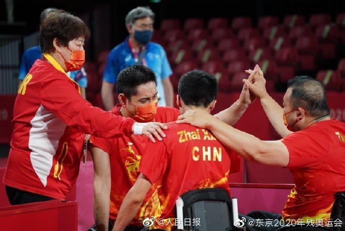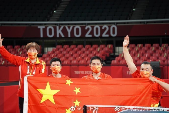 北京时间9月2日,东京残奥会乒乓球男子团体MT3级决赛,中国队以2:1的成绩击败德国队,夺得冠军。