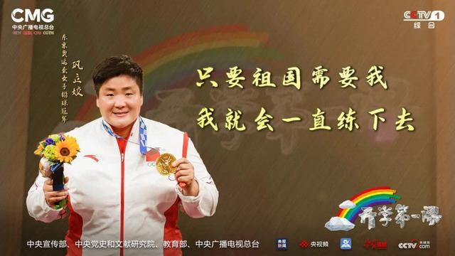 在《开学第一课》节目现场,巩立姣坦言,铅球项目的训练其实是相当枯燥的,而自己一练就是二十一年,是夺冠的理想、为祖国争光的信念,支撑着她在失败和伤病中坚持下来。作为一名党员,巩立姣把这枚金牌当作献给党和祖国的礼物,也用自己的行动向全世界展现了中国力量。在《开学第一课》视频连线的最后,已经32岁的巩立姣,仍然目光坚定地说道:“只要祖国需要我,我就会一直练下去的。”