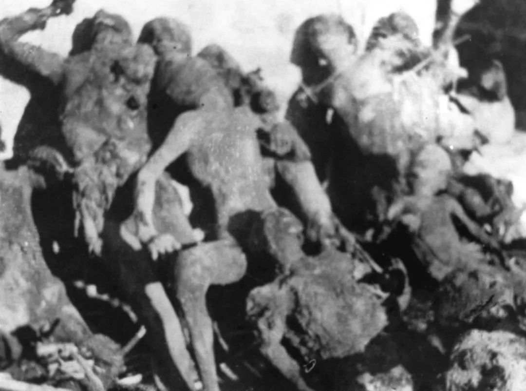 1941年1月25日,日军血洗了河北省丰润县潘家峪,杀死中国平民1230人,制造了骇人听闻的“潘家峪惨案。被日本侵略军杀害的潘家峪老百姓的尸体。新华社发