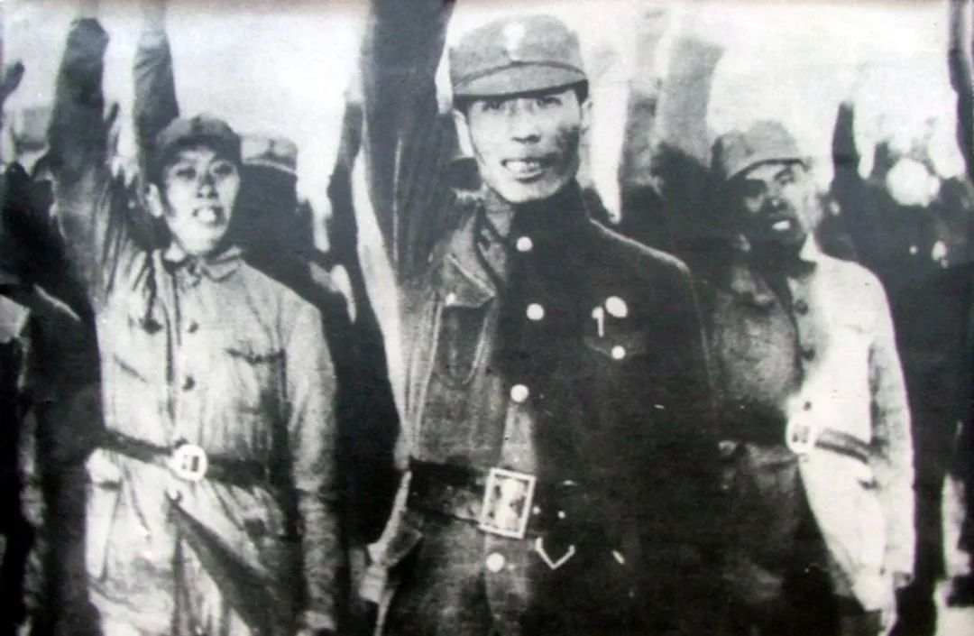 资料图片:1937年,谢晋元领导部属举手宣誓:将生命奉献于国家与民族。