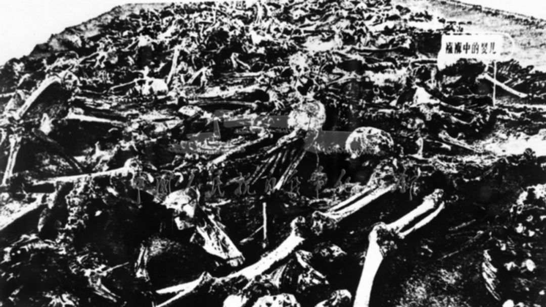 1932年9月16日,日军在辽宁抚顺平顶山村集体屠杀村民3000余人。图为平顶山惨案死难同胞的部分遗骨。(图片来源:中国人民抗日战争纪念馆官网)