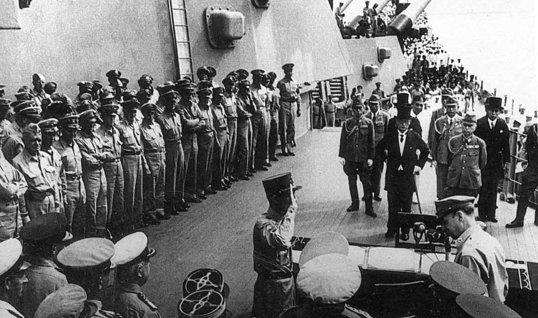 1945年9月2日,日本向盟军投降仪式在东京湾“密苏里号”军舰上举行。新华社发