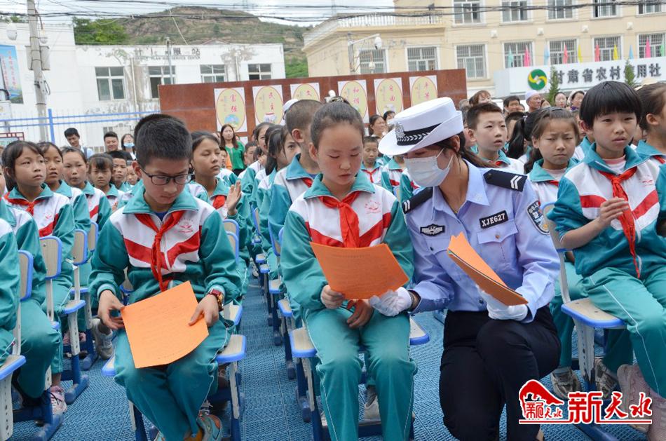 9月2日,张家川县公安交警以新学期“开学季”为契机,为张家川县大阳镇中心小学680多名学生和家长送上特别的“开学礼物”——一堂生动有趣的交通安全宣传课,通过新学期交通安全“第一课”,让孩子们树立了交通安全意识,教育广大学生自觉遵守交通法规,维护自身安全,养成文明出行的良好习惯。