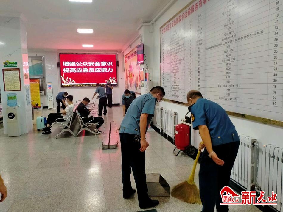9月3日上午,天水市交通综合执法队三组党员来到麦积汽车站打扫候车厅卫生,开展“创建全国文明城,在职党员先锋行”志愿服务活动。
