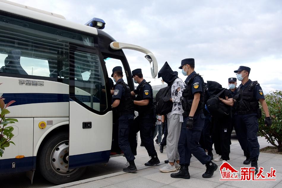 新天水讯【记者王晓华】9月2日18时20分,天水市公安局麦积分局侦办“8•18” 特大电信网络诈骗案专案组押解8名犯罪嫌疑人凯旋。