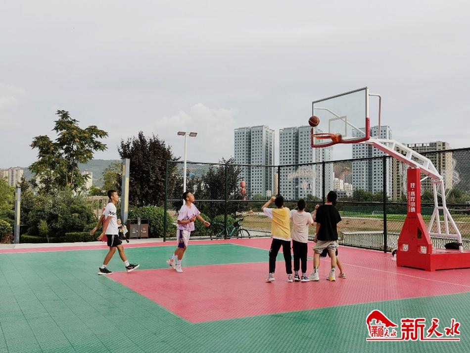 9月4日,几位青少年在秦州区藉水北路佳·水岸小镇打篮球锻炼身体。据了解,眼下“双减”政策已开始实施,小学、初中孩子的作业和“培优”已明显减少,留给孩子自由支配的时间多了起来。充分的自由支配时间,是青少年全面发展以及培养真正的兴趣爱好的重要条件。体育锻炼不仅能增强孩子的体质,更能在注意力、记忆力、执行力、生活能力上给他们带来贯穿一生的益处。