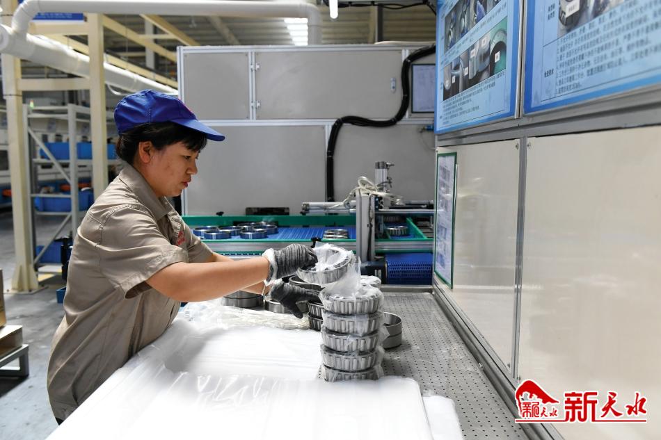 9月6日,甘肃海林中科科技股份有限公司生产车间,工人在生产轴承。