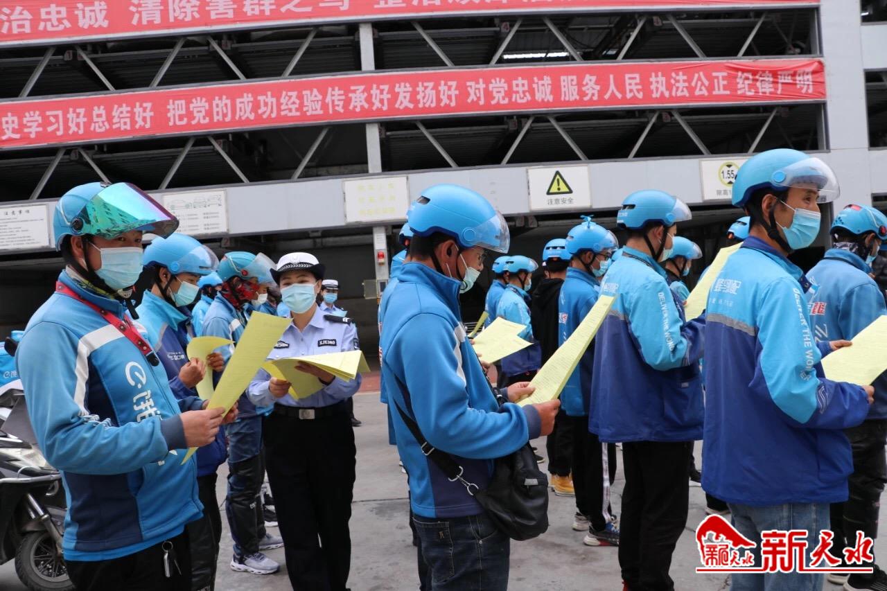 新天水讯【记者王晓华】为了进一步推进机动车停放“一难两乱”专项整治工作,加强送外卖交通安全教育工作,增强送外卖驾驶人的交通安全意识,9月6日,麦积公安分局交警大队组织辖区“饿了么”网上订餐平台的负责人和送餐员,开展交通安全教育培训活动,提高骑手们的交通安全意识。