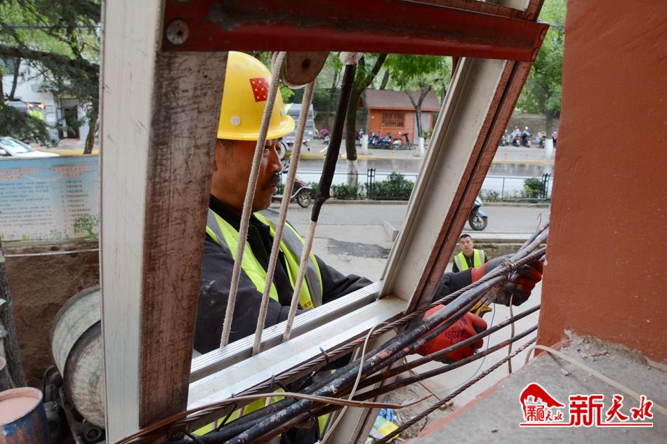 9月7日上午,国网天水供电公司的马师傅和张师傅在秦州区新华路市五中段忙得不亦乐乎,他们两个人一组,对沿线公用电网的配套线、箱进行修配和整理。