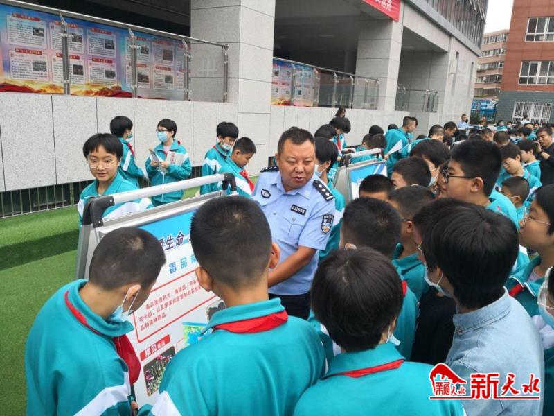 9月3日,天水市公安局秦州分局石马坪派出所民警走进天水逸夫实验中学,开展禁毒宣传活动。活动现场,民警从什么事毒品、毒品的种类、毒品的危害、已经如何抵制和远离毒品侵害,积极引导学生提高识毒、防毒、拒毒的意识。