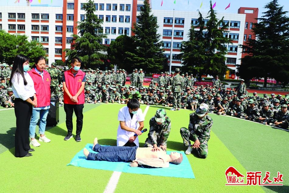 新天水讯记者王莹 为做好学校疫情防控科学知识普及,提高广大师生的自我防护意识和应急救护技能,9月4日,秦州区卫健局、区红十字会组织专业人员走进市五中,开展疫情防控科普进校园宣传及应急救护技能培训活动。