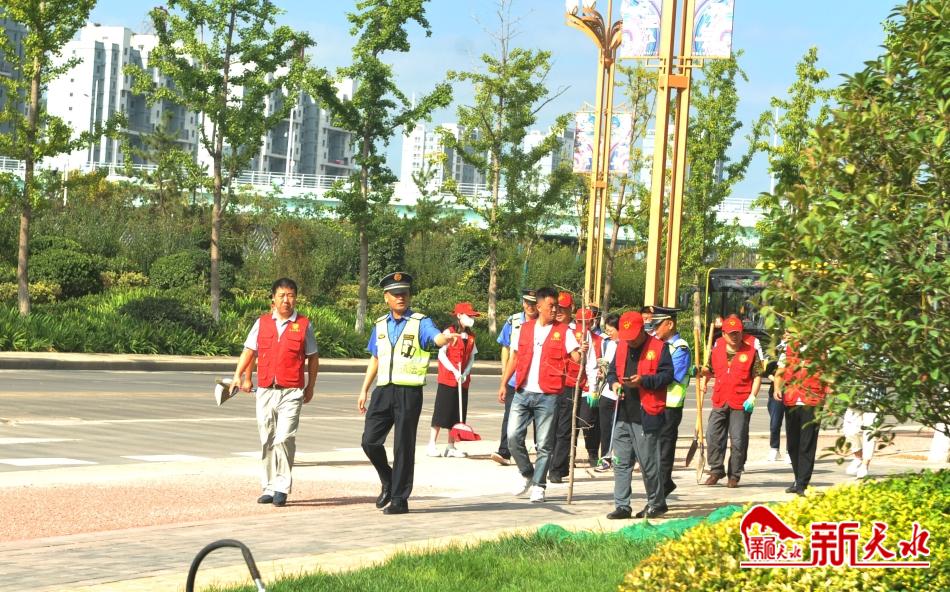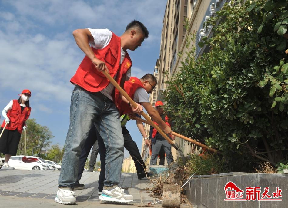 9月10日,天水日报社组织志愿者来到“包街包巷包小区”责任片区,会同秦州区综合执法局成纪新城中队、七里墩街道碧桂园社区,开展创城活动门前三包清理整顿活动。