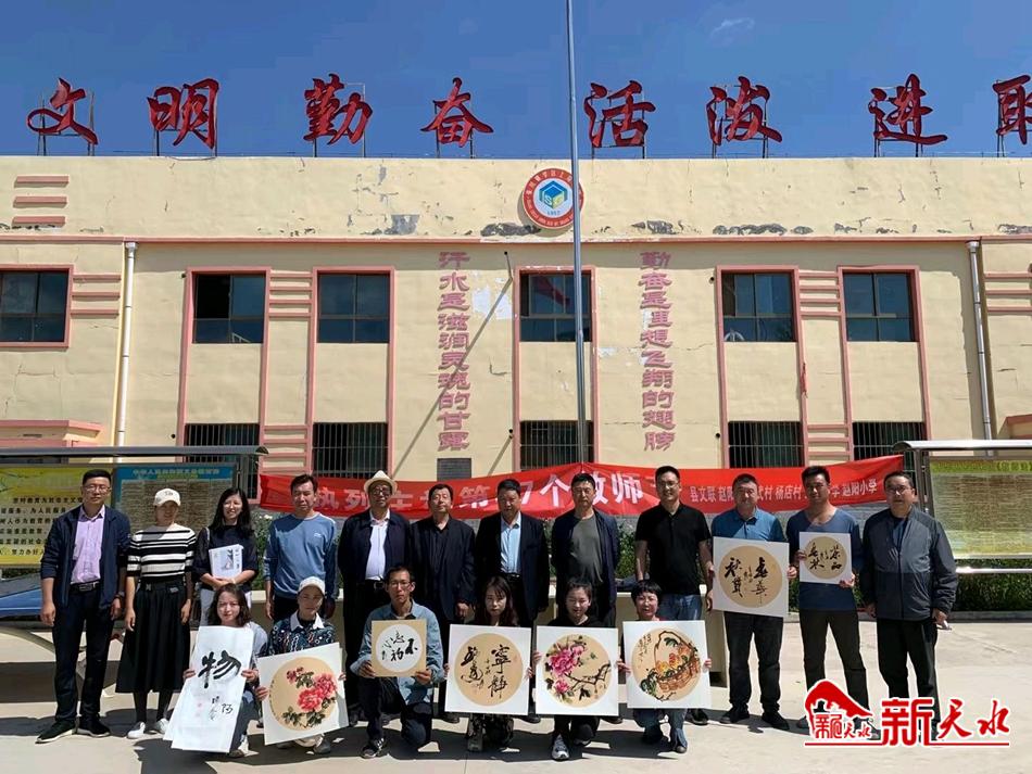 为了进一步活跃乡村教师的业余文化生活,促进农村精神文明建设。9月10日,适逢第37个教师节,张家川县文联组织县书法家协会、美术家协会的部分书画家,深入到张家川镇赵阳村小学开展“送书画进校园”活动。现场为该校师生捐赠《关山文艺》文学期刊100余册、创作捐赠书画作品60余幅,受到当地干部群众的好评。