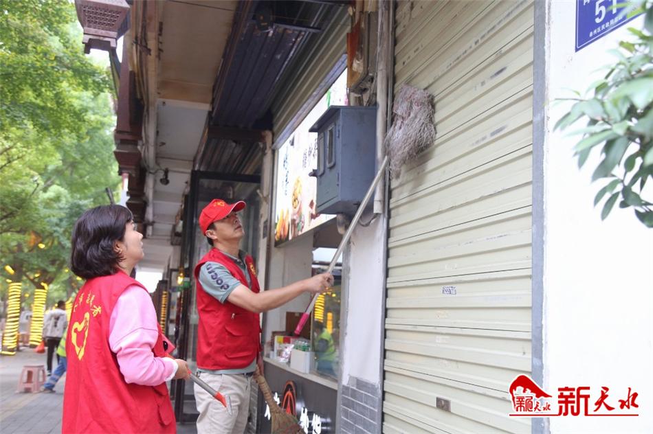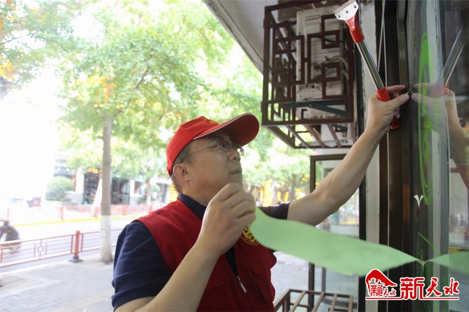 活动中,马军与市委宣传部干部职工对街道周边及沿街商铺的垃圾和小广告进行清理,对绿化带内的烟头、果皮纸屑等堆积物及时清理,擦拭垃圾桶、宣传橱窗等公共设施。志愿者还提醒周边商铺,要注意保持街道卫生,不乱摆乱放。