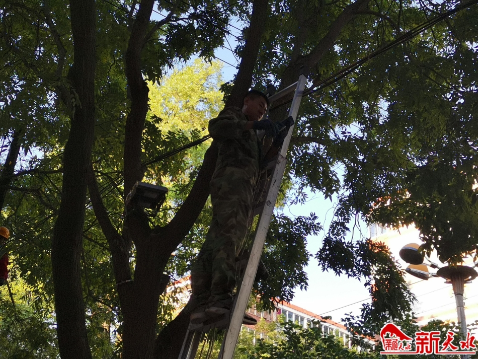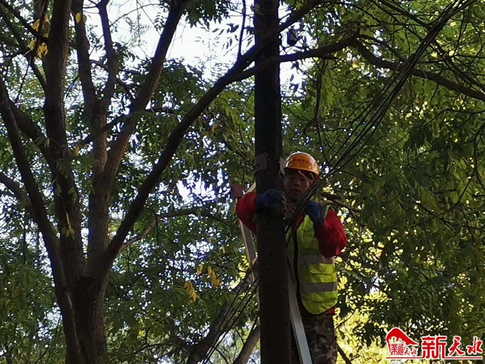 9月10日,施工人员正在整治秦州区合作北路的“城市蜘蛛网”。据了解,天水市“城市蜘蛛网”集中整治行动,重点对两区道路两侧商业大街、公共广场、居民小区等架空电线网线乱搭乱拉、乱牵乱挂、裸露和垂落线头等户外“蜘蛛网”进行集中整治,确保达到“空中线缆整齐规范、无乱拉乱设”要求,助力创城。