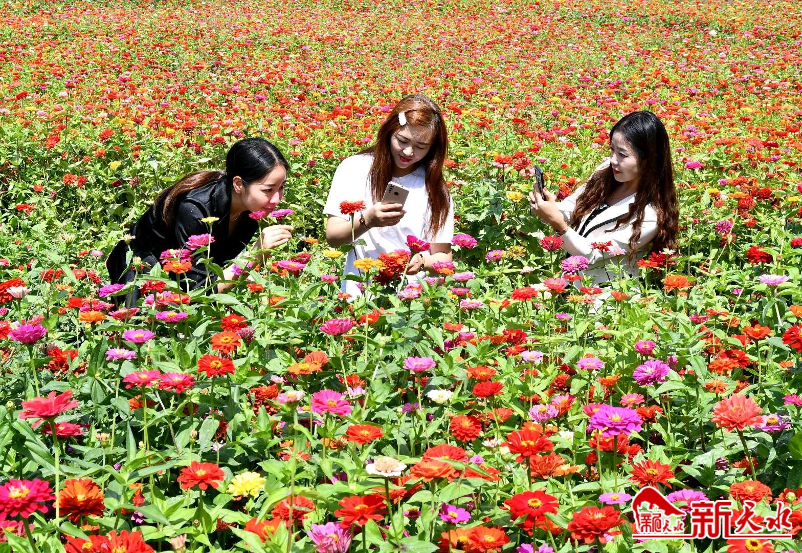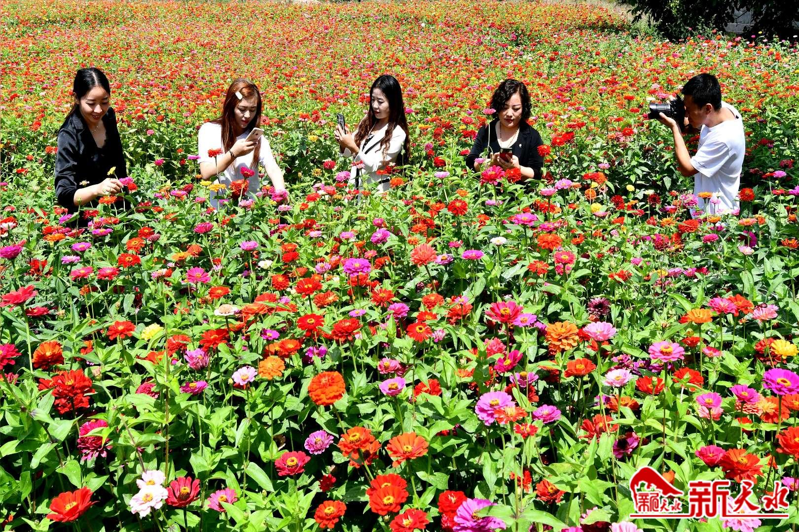 新天水讯【特约通讯员窦耀辉】九月芳菲、花海流香。9月10日,天水市麦积区社棠镇郭坪村“柿子乐园”生态旅游项目地,绝美花海次第绽放,吸引前来拍照留念的市民和游客络绎不绝,在山水田园间形成一幅自然画卷,成为生态观光休闲的“网红打卡地”。