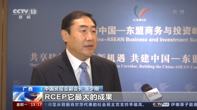 中国贸促会副会长 张少刚:RCEP它最大的成果,是把整个原来亚太地区分散在15个国家的市场或者两两对应的这个国家的市场融合成一个规则统一的、市场统一的这么一个大市场。不仅是会对亚太地区的经济复苏产生作用,而且也会对整个世界的经济发展产生非常积极和有力的推动作用。